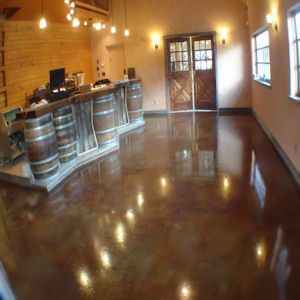 Textured concrete quickly and economically replicates the look and texture of almost any stone surface, from flagstone slabs to smooth marble. With the addition of acid staining, this concrete finish option can expand the decorating possibilities for any retail and commercial business, from a coffee shop to a five star hotel to retail stores like Old Navy.